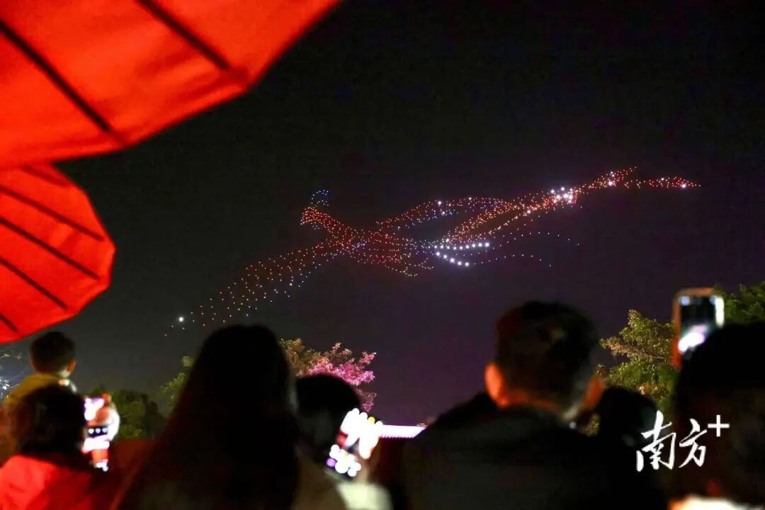 20日晚,“潮起古城·马跃新春”无人机表演在潮州韩文公祠空域上演,广济桥、府楼猴、红桃粿等潮州文化元素轮番上阵,视听盛宴获游客点赞。